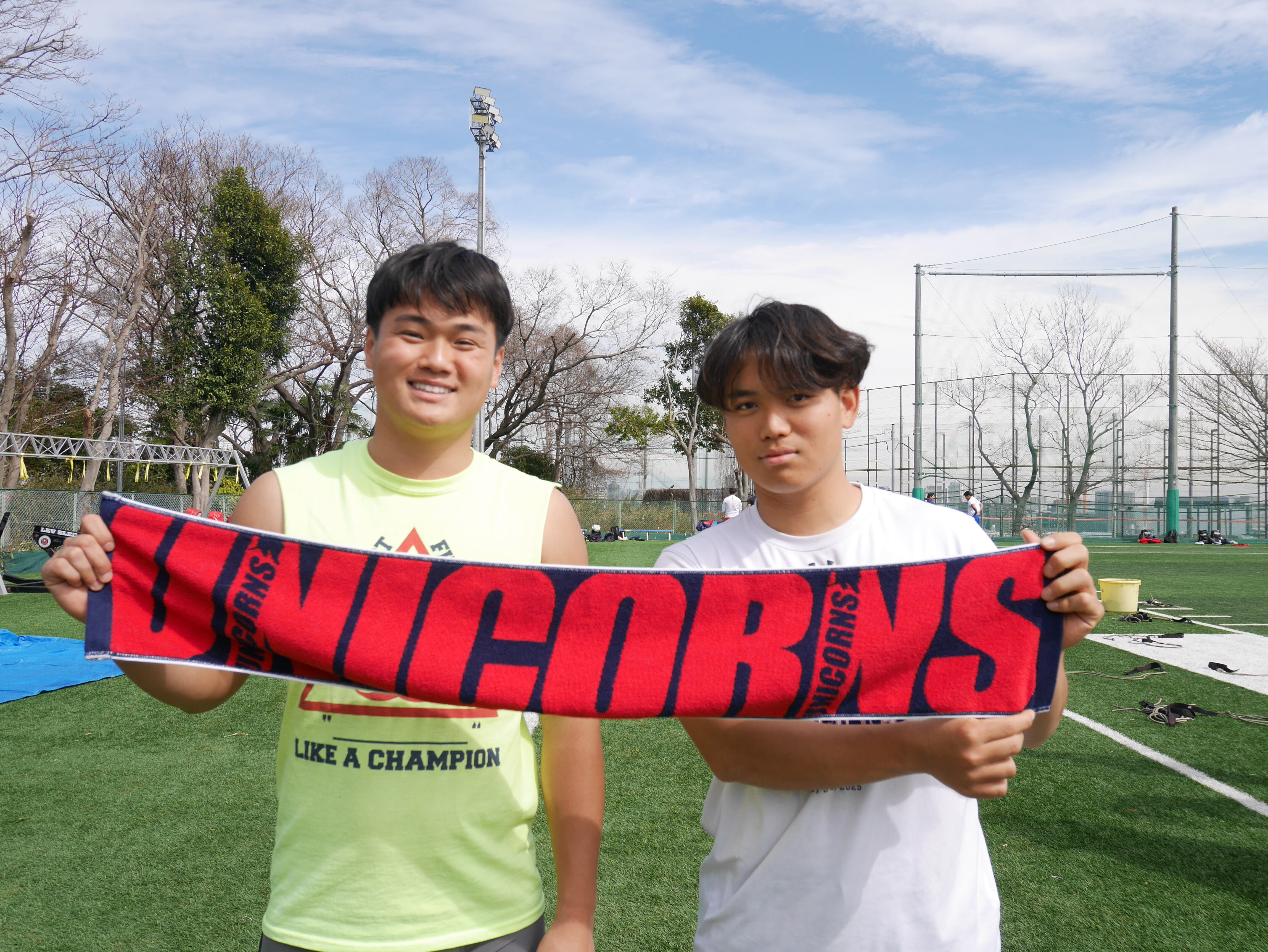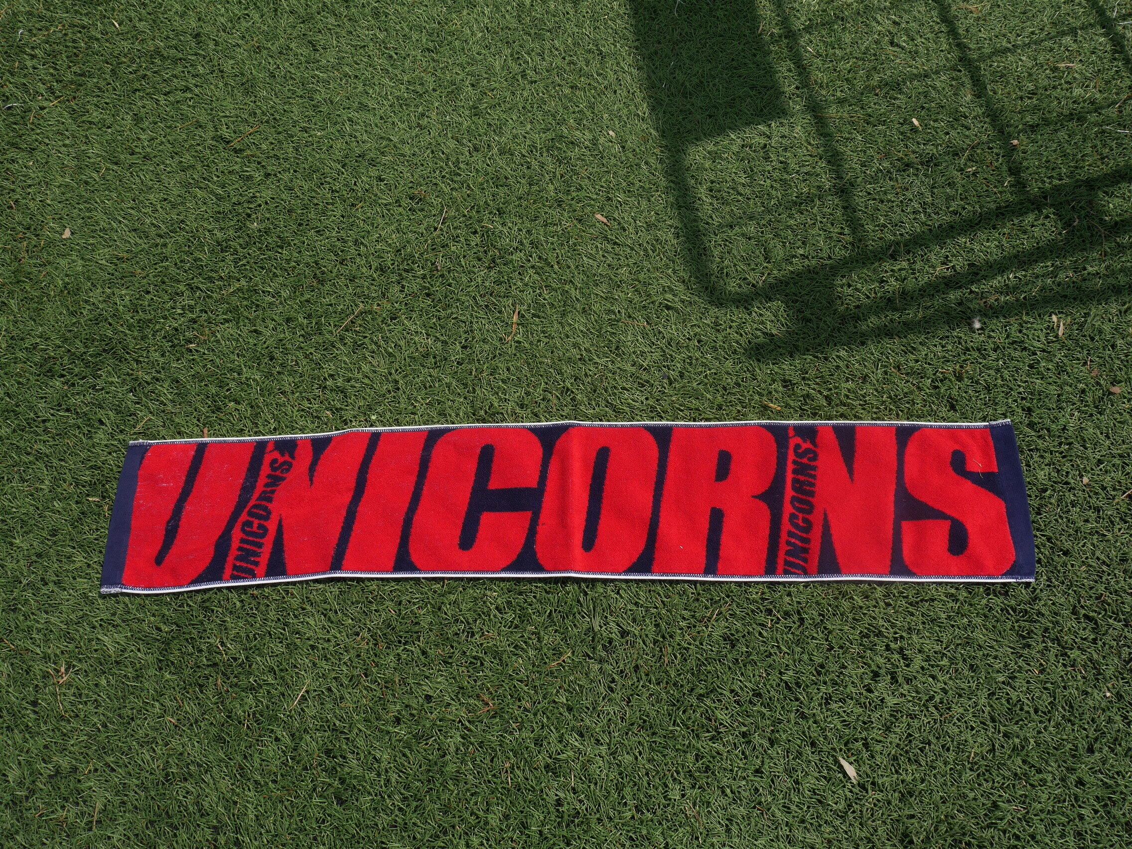 大きくUNICORNSの文字が入った、新デザインのマフラータオルです! 持つだけで目を引く、インパクト抜群のデザイン!! ジャガード織りの高品質素材で、 観戦にも普段使いにもぴったりのアイテムです!